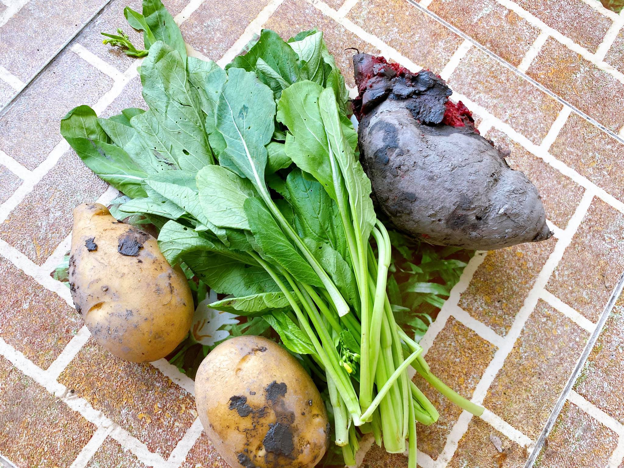 Tới trưa, có Mạnh Thường Quân nào đó không biết tên chở tới cho bà con trong khu mấy bịch khoai với ít rau cải, vừa nghe tiếng la thất thanh “lấy rau” ở đầu chốt xong là chưa đầy một phút ba mươi giây đã sạch sẽ, may là mình dạo ngày hay ngồi trên balcony (cám ơn dượng Linh đã xúi phải giữ gìn sự trong trắng của tiếng Tây) cho thoáng với đỡ tiền điện nên cũng nằm trong số những người tham gia vào thử thách 1:30 đó.
